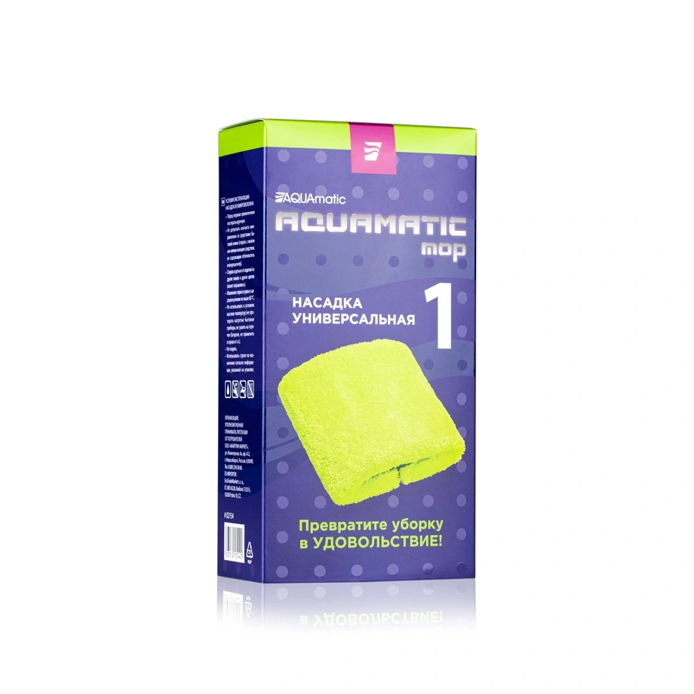 فوط التنظيف AQUAmatic MOP لتنظيف الأسطح المختلفة مصنوعة من ألياف دقيقة فائقة الرقة والنحافة تم إنتاجها باستخدام أحدث تقنيات صناعة النسيج: كل خيط مُقطَّع طوليًا إلى ثمانية أجزاء منتظمة الشكل؛ ما يشكل فتحات دقيقة بطول الخيط بالكامل. وبفضل هذه الخاصية، يصبح للممسحة تأثير شعري، وبفضل تأثير قوة التوتر السطحي تتفكك الرطوبة، إلى جانب الأوساخ والغبار، عن السطح الذي يتم تنظيفه، ويلتقطها هيكل النسيج.